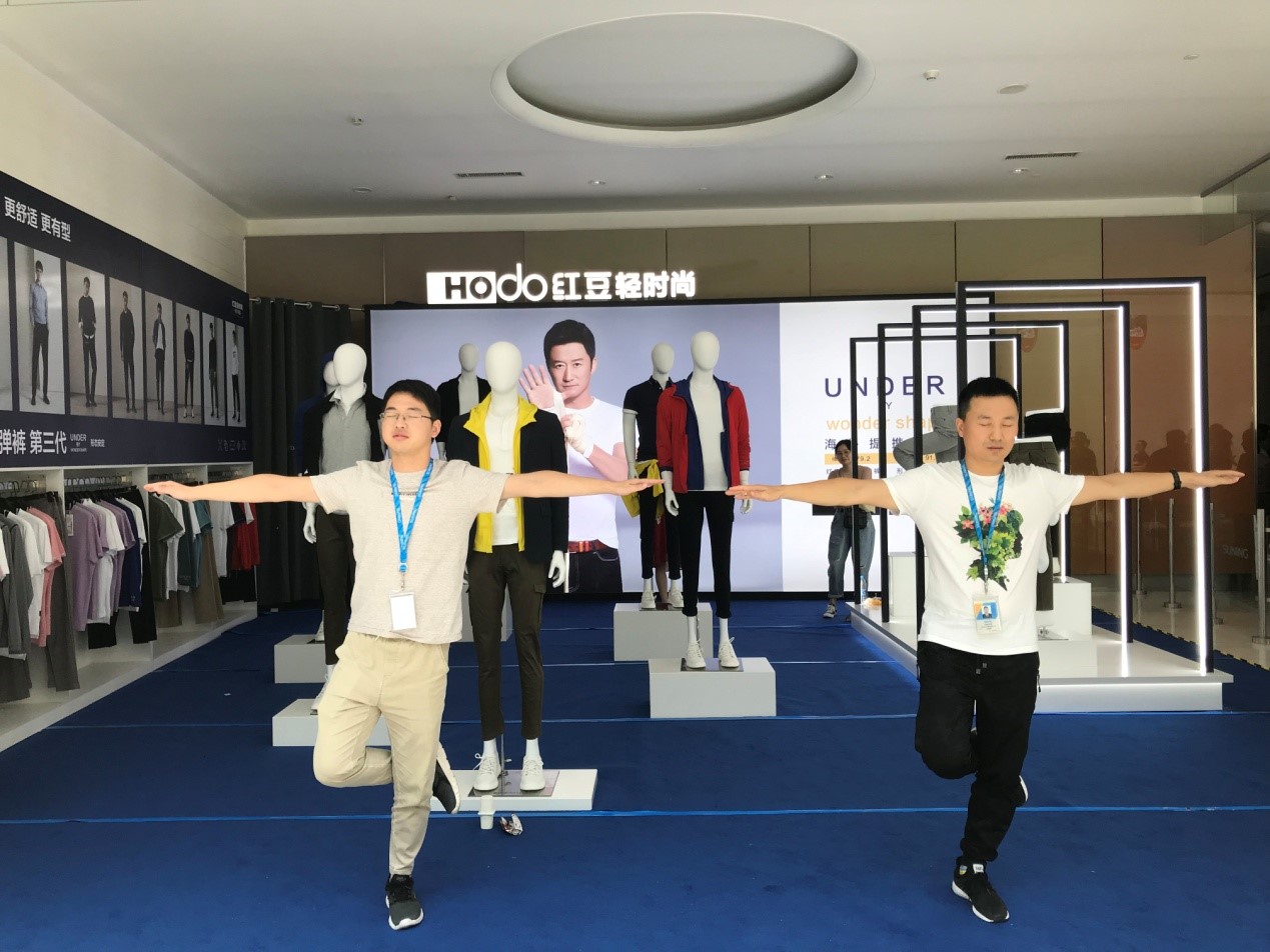 ? ? ? ? 新品發(fā)布,驚喜連連,紅豆快閃店也驚艷亮相蘇寧,快閃店以產(chǎn)品體驗為主,線上線下聯(lián)動,引爆七夕?,F(xiàn)場紅粉爭相體驗紅豆3D高彈褲等人氣產(chǎn)品,沒有親身加入深蹲挑戰(zhàn)的紅粉似乎還不過癮,又紛紛加入快閃店的體驗互動,閉眼10秒挑戰(zhàn)大鵬展翅,在現(xiàn)場又掀起了一波高潮。
