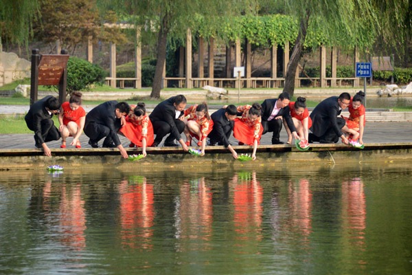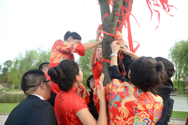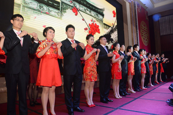 在紅豆,有著無數(shù)個(gè)這樣的故事等待我們挖掘。這些紅豆人因?yàn)榧t豆情文化而扎根企業(yè),從而也吸引更多的人選擇在紅豆扎根。紅豆是有形的情,在紅豆,每個(gè)員工都會(huì)感受到家庭溫暖。此次紅豆樹下的婚禮,紅豆為紅豆員工打造美輪美奐的婚禮,精心安排各種獨(dú)具紅豆特色的環(huán)節(jié)。鵲橋相會(huì)、恩愛宣誓、紅豆樹下鎖同心、新人共放荷花燈,紅豆情緣等等系列戶外儀式,演繹著新人相識(shí)相戀相愛的浪漫故事。紅豆集團(tuán)還為新人們送上紅豆緣定制首飾、定制旗袍、紅豆形象男裝等具有濃厚中國(guó)風(fēng)的新婚賀禮,共邀新人的親朋好友參加這場(chǎng)最浪漫的新中式集體婚禮,以紅豆之名見證最美的愛情。