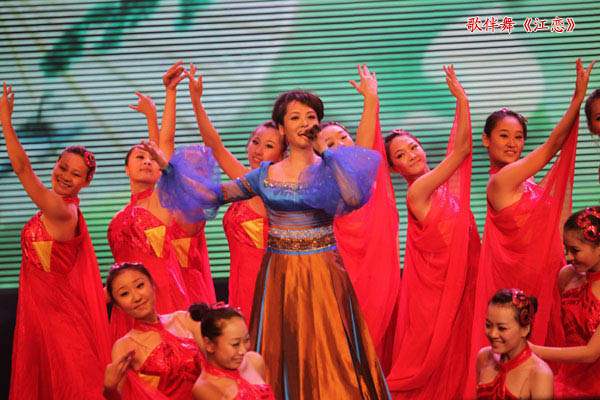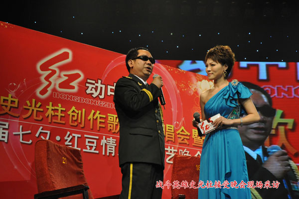 “江中有你的小溪,江中有我的河,江中有你人生的一段跋涉,在那激情演繹的歲月,你像陽光走進(jìn)天地,走進(jìn)我生活……”歌曲《江戀》的旋律剛一響起,整個(gè)劇場內(nèi)爆發(fā)出雷鳴般的掌聲。“這首歌是史光柱為歌頌愛情,為我們紅豆集團(tuán)寫的歌?!崩钕壬贿吂恼疲贿呎f道。如果沒有1984年的那場戰(zhàn)爭,這個(gè)世界將會(huì)少一位英雄;如果沒有那場戰(zhàn)爭,這個(gè)世界就會(huì)多一雙明亮的眼睛。史光柱,這個(gè)響亮的名字,在上個(gè)世紀(jì)八十年代感動(dòng)和影響了整整一代人。戰(zhàn)傷后,他從雙目失明的陰影中走出,拿起筆桿,在文藝的陣地繼續(xù)攻關(guān)拔礙、沖鋒陷陣,譜寫了一首首紅色經(jīng)典和一個(gè)個(gè)史光柱傳奇。據(jù)悉,當(dāng)天整場晚會(huì)共16首歌曲全部是由史光柱創(chuàng)作而成,其中《江戀》、《紅豆》和《青春木棉》三首歌曲是他專門為紅豆集團(tuán)創(chuàng)作的?!笆氛?,這么多年來,究竟是什么力量讓您始終飽含創(chuàng)作的激情?”晚會(huì)上,主持人的問題代表了所有人心中的疑問?!白鎳?、大愛、崇高的理想一直都在我心中,是它們激勵(lì)著我克服了重重困難,我想說的是,崇高讓我高尚,崇高讓我內(nèi)心充滿陽光?!笔饭庵幕卮鹨矛F(xiàn)場觀眾連連贊嘆,將晚會(huì)推向了一個(gè)小高潮。男生獨(dú)唱、女生獨(dú)唱、男女對(duì)唱、歌伴舞,一首首紅色經(jīng)典不僅激發(fā)起觀眾們對(duì)于愛情的美好聯(lián)想,而且引起了他們對(duì)故鄉(xiāng)、祖國的思念。