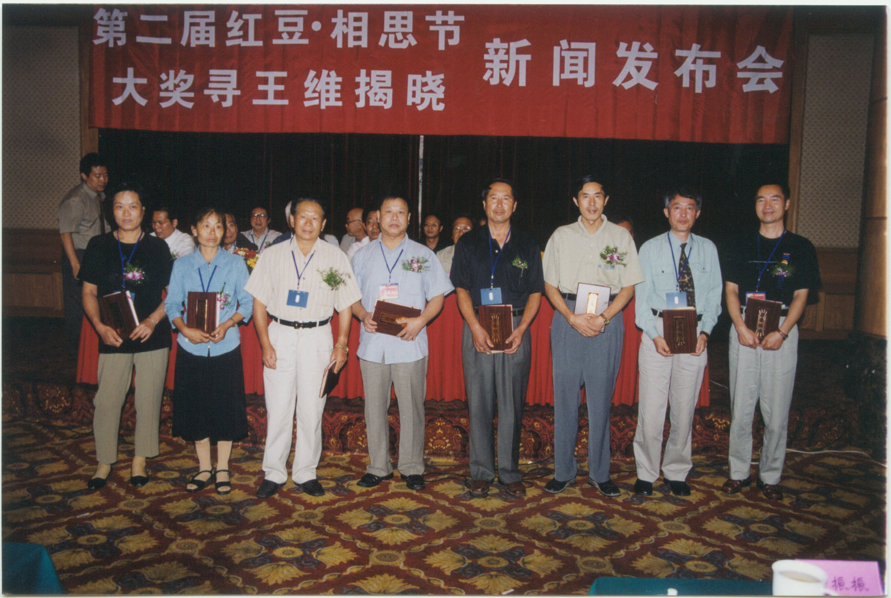 7月15日,“七夕紅豆·相思節(jié)詩詞大賽”歷經(jīng)三個半月截稿,據(jù)統(tǒng)計此次大賽共收到美、英、日、法、加拿大、新西蘭、泰國等十幾個國家和兩岸三地參賽稿件108000多篇,參賽者達到了31000多人。7月24日,臺灣著名詩人余光中欣然作《紅豆》詩一首,并電傳到紅豆集團。7月25日,大賽組委會把進入復評的隱名稿件送往北京,由大賽評委會進行復評、終評。7月30日,大賽評委會經(jīng)過反復評審、打分后,評出所有“七夕紅豆·相思節(jié)詩詞大賽”獲獎作品。 8月14日,“七夕紅豆·相思節(jié)詩詞大賽”(20萬大獎尋當代王維)揭曉新聞發(fā)布會在無錫錦江大酒店舉行,來自北京的詩人劉征以一首古風《紅豆曲》摘取了桂冠。紅豆集團董事局主席周耀庭、著名詩人賀敬之、孫軼青、全國政協(xié)委員顧蔚慶等參加了這次發(fā)布會,并給獲獎者頒發(fā)了獲獎證書與獎金。
