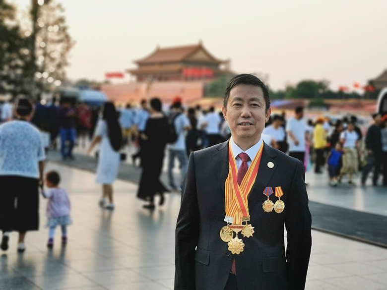 紅豆集團(tuán)董事局主席兼CEO周海江受邀前往北京出席新中國成立70周年系列活動,為了此次歌會,他在天安門現(xiàn)場附近拍攝了視頻短片傳到歌會現(xiàn)場,與所有紅豆人分享參與國慶活動的喜悅和光榮,他表示“能夠受邀參與國慶系列活動,這份榮譽歸功于所有員工幾十年來始終堅持不移的聽黨話、跟黨走、報黨恩”,他還表達(dá)了對祖國生日的祝福。