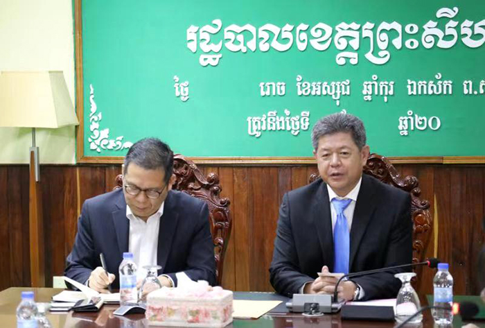 西哈努克省中國(guó)商會(huì)陳堅(jiān)剛會(huì)長(zhǎng)拜訪郭宗仁省長(zhǎng)并進(jìn)行友好交談