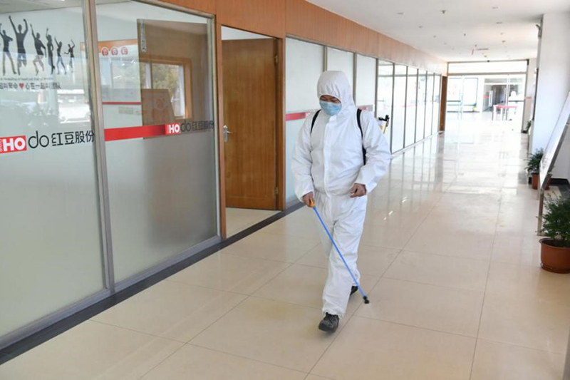 疫情期間,廠區(qū)的消毒任務(wù)是十分重要的。謝軍每天都背著噴霧器,不少于三次對(duì)工廠的各個(gè)角落進(jìn)行消毒?!懊刻毂持@個(gè),感覺自己像是在給花澆水的園丁?!敝x軍開玩笑的說。