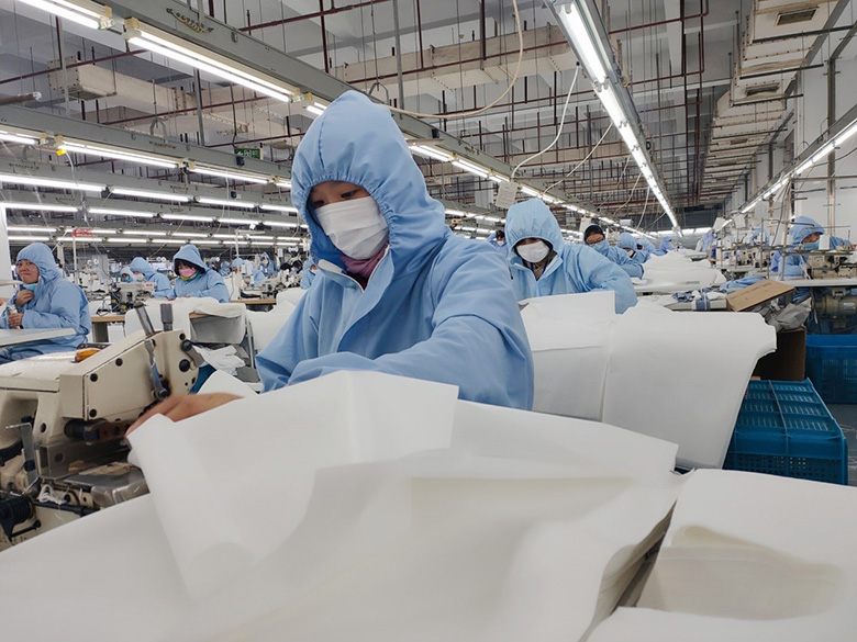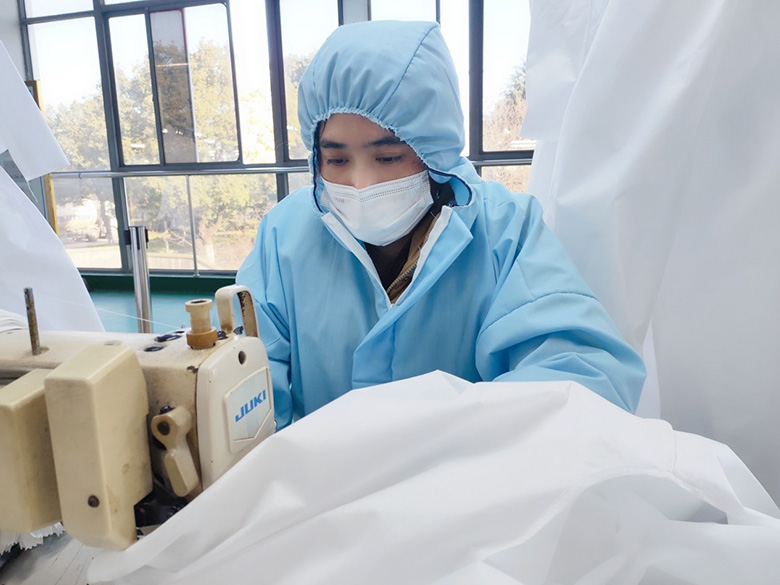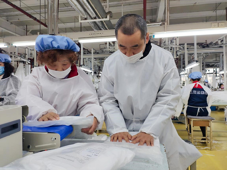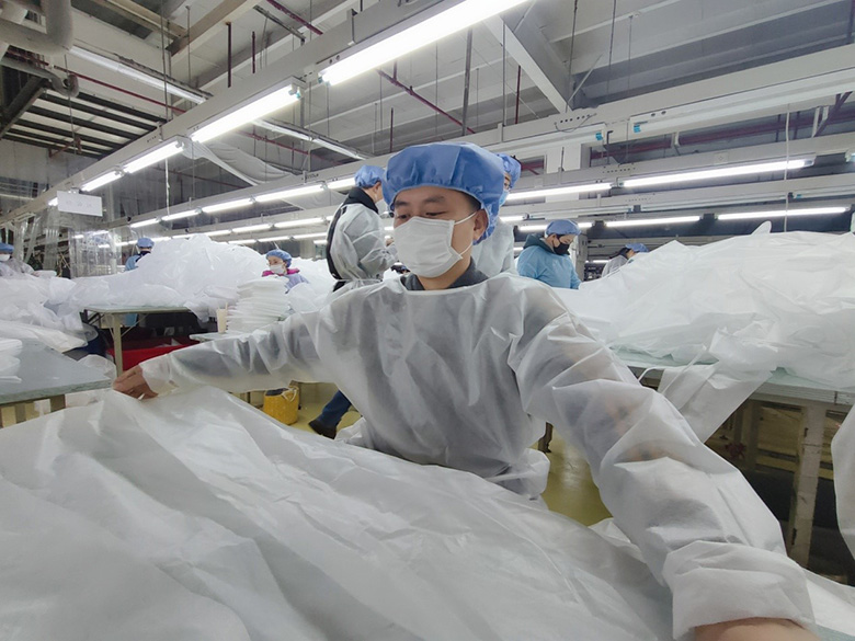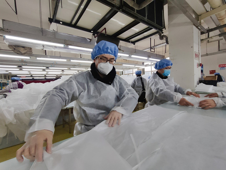 另外一邊,公司人力資源部逐個(gè)和本地員工聯(lián)系,告知公司接到生產(chǎn)一次性醫(yī)用隔離服的緊急任務(wù),動(dòng)員他們趕快來上班,聽到消息后黨員干部們立即挺身而出,帶頭趕赴一線,員工們也紛紛響應(yīng)。
