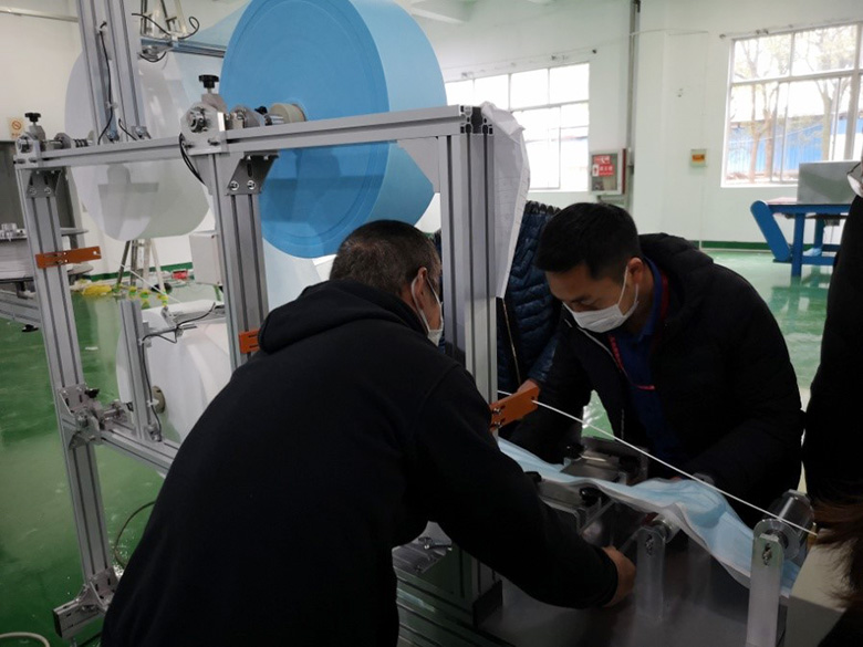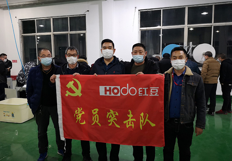 今天隨著兩套全自動(dòng)口罩生產(chǎn)設(shè)備運(yùn)到工廠,紅豆又將新添兩條口罩生產(chǎn)流水線。紅豆口罩黨員突擊隊(duì)一馬當(dāng)先,在隊(duì)長(zhǎng)馮振標(biāo)帶領(lǐng)下,一呼百應(yīng),董建剛、戴宏、田勇、蔣國(guó)敏等黨員干部沖在前,犧牲周末休息時(shí)間,加班加點(diǎn)連夜安裝調(diào)試口罩生產(chǎn)流水線設(shè)備。