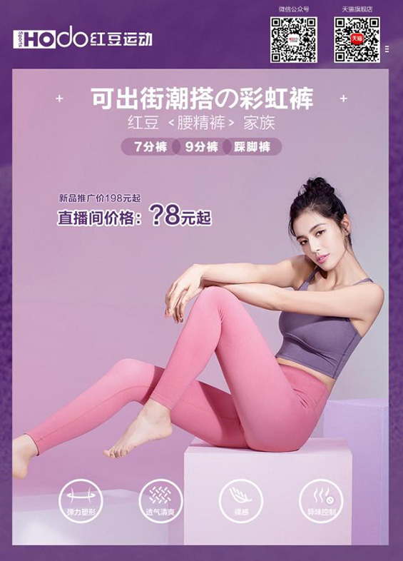 現(xiàn)在的女孩子都喜歡穿能夠凸顯身材的衣服,尤其是褲子,專挑能夠顯腿細(xì)腿長的。紅豆運(yùn)動裝的新款小妖精褲,加高14cm超高腰設(shè)計,加寬腰面更帖和,收腹作用明顯,能夠凸顯完美S型身材。面料非常柔軟舒適,沒有壓迫感,能夠滿足任何大幅度拉伸活動。而且,面料還使用了抗菌劑,能有效控制異味,如化學(xué)氣味,汗臭等,還可以抑制微生物細(xì)菌滋生,適合各種敏感肌穿著。