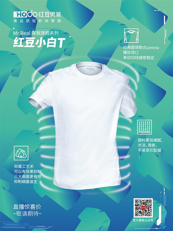 紅豆男裝的夏季新款小白T,時尚耐穿,是夏季男士的必備單品。小白T精選優(yōu)質(zhì)純棉面料,經(jīng)過特殊工藝處理后,面料吸濕排汗功能非常強(qiáng),貼身穿著可以給消費(fèi)者帶來清涼體感。并且與眾不同的是,此款小白T還采用了德國魯?shù)婪蛞志幚?,可以有效抑制四大?xì)菌:大腸桿菌、金黃色葡萄球菌、肺炎桿菌和白色念珠菌,真是一件環(huán)保又安全的T恤。