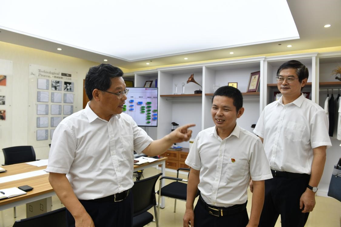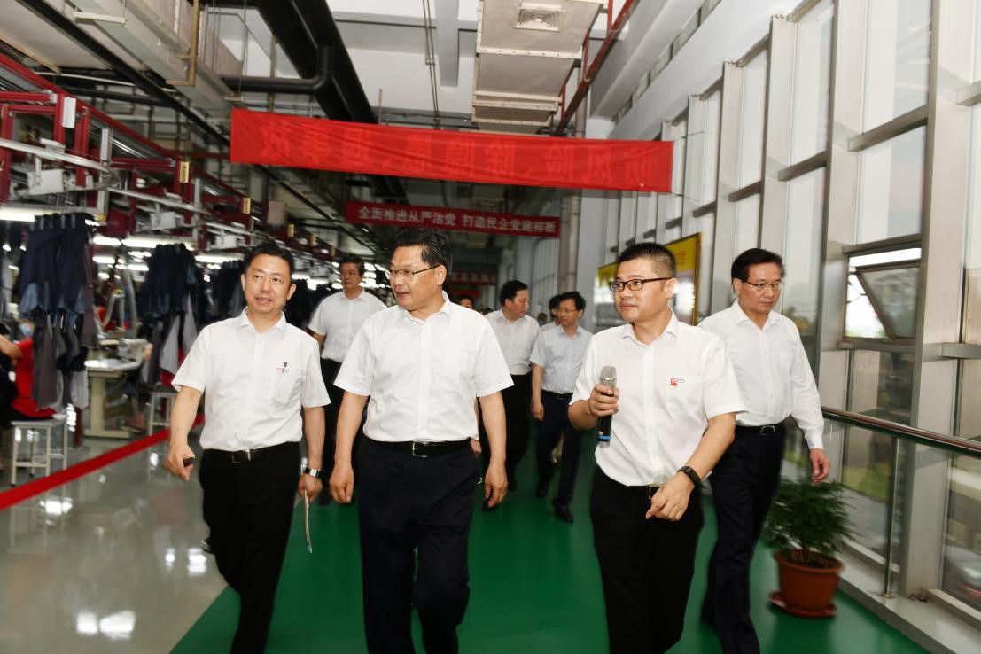任振鶴一行先后參觀了紅豆展館、紅豆職工之家、紅豆西服車間、勞模工作室和紅豆通用半鋼智能車間,觀看了紅豆產(chǎn)改、黨建宣傳片,詳細(xì)聽取了紅豆集團(tuán)黨委書記、董事局主席兼CEO周海江介紹的“黨建帶工建、培育新時代產(chǎn)業(yè)工人”等方面工作的開展情況。他對紅豆創(chuàng)立的現(xiàn)代企業(yè)制度+企業(yè)黨建+社會責(zé)任“三位一體”的中國特色現(xiàn)代企業(yè)制度表現(xiàn)出濃厚興趣,對紅豆集團(tuán)將黨建和現(xiàn)代企業(yè)制度有機(jī)結(jié)合、黨建文化和企業(yè)文化深度融合、黨建引領(lǐng)工建的做法給予肯定。
