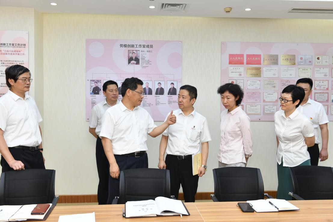 在勞模工作室,全國勞模候選人郭軍偉向任振鶴介紹了近期開展的襯衫、西服智能化個性定制項目,任振鶴對這一項目的產(chǎn)業(yè)化十分看好。他表示,紅豆堅持以黨建為引領(lǐng)、產(chǎn)改為引擎,率先創(chuàng)新機(jī)制、搭建平臺,大力弘揚勞模精神、工匠精神,充分給予了產(chǎn)業(yè)工人出彩的機(jī)會。全國勞模、省勞模和市勞模遍布紅豆各層級,形成了一支勞模梯隊,激發(fā)出更多員工的創(chuàng)新創(chuàng)業(yè)熱情,使企業(yè)煥發(fā)出無限生機(jī)。