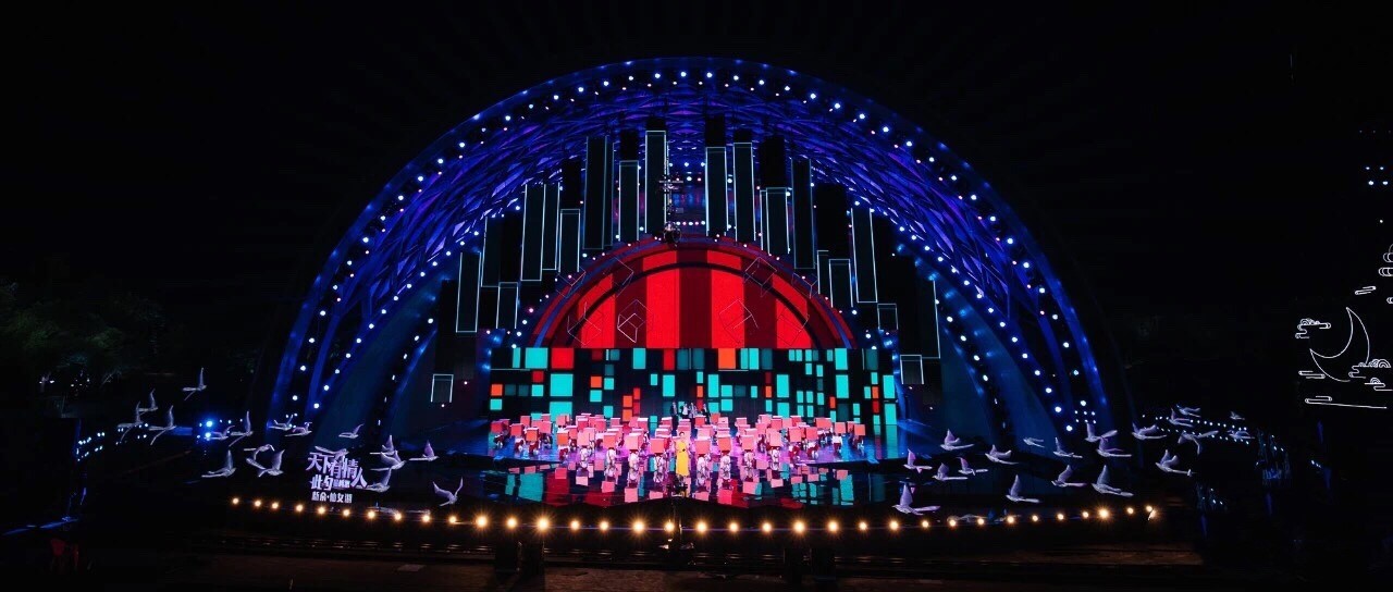 從2016年首度合作至今,紅豆集團(tuán)聯(lián)合央視推出七夕特別節(jié)目已經(jīng)走過了五個年頭,也是這臺晚會選擇戶外錄制的第四年。2016年,紅豆為央視中國情人節(jié)特別節(jié)目隆重代言,正式拉開同央視合作的帷幕,與“天下有情人”共度浪漫七夕。2017年,這臺七夕晚會首次走出演播室,進(jìn)駐七仙女傳說之鄉(xiāng)江西新余,在旖旎的仙女湖畔搭建實景舞臺,在古典風(fēng)潮與現(xiàn)代技術(shù)融合中,來了一場精妙唯美的時空穿越之旅。2018年,晚會首次在南北兩個會場平行推進(jìn),南依然是江西新余仙女湖,北則選了有著深厚七夕節(jié)文化淵源的陜西西安昆明池,南方的溫柔婉約和北方的古樸大氣在七夕交相輝映;2019年于仙女湖畔描繪“七彩七夕”,鄰水而建的舞臺與水面倒影,形成水天一色的美景,盡顯古典風(fēng)韻。
