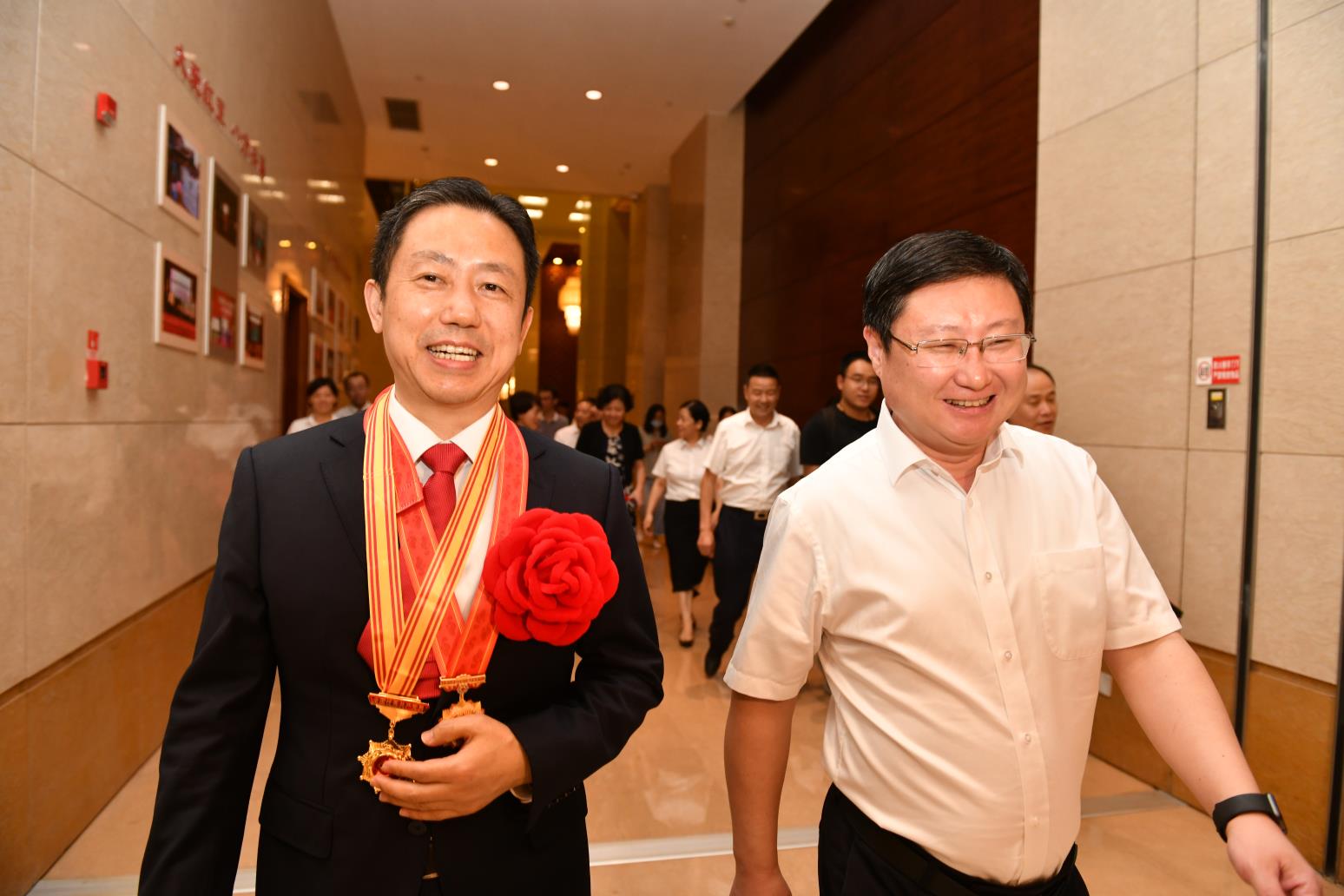9月8日傍晚,受無錫市委黃欽書記委托,錫山區(qū)委書記周文棟、組織部部長竇虹、副區(qū)長陳奕一行代表市區(qū)黨政班子前往紅豆杉莊舉行簡單而隆重的儀式,熱烈歡迎剛剛獲“全國優(yōu)秀共產(chǎn)黨員”“全國抗擊新冠肺炎疫情先進個人”的紅豆集團黨委書記周海江從北京載譽歸來。