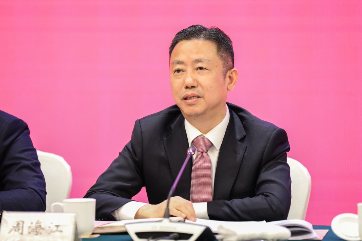 區(qū)企業(yè)家協(xié)會(huì)會(huì)長(zhǎng)周海江在發(fā)言中,深度剖析了當(dāng)前國(guó)內(nèi)外形勢(shì),并結(jié)合紅豆抗擊疫情、化危為機(jī)的發(fā)展經(jīng)驗(yàn),同與會(huì)企業(yè)家進(jìn)行了交流分享。