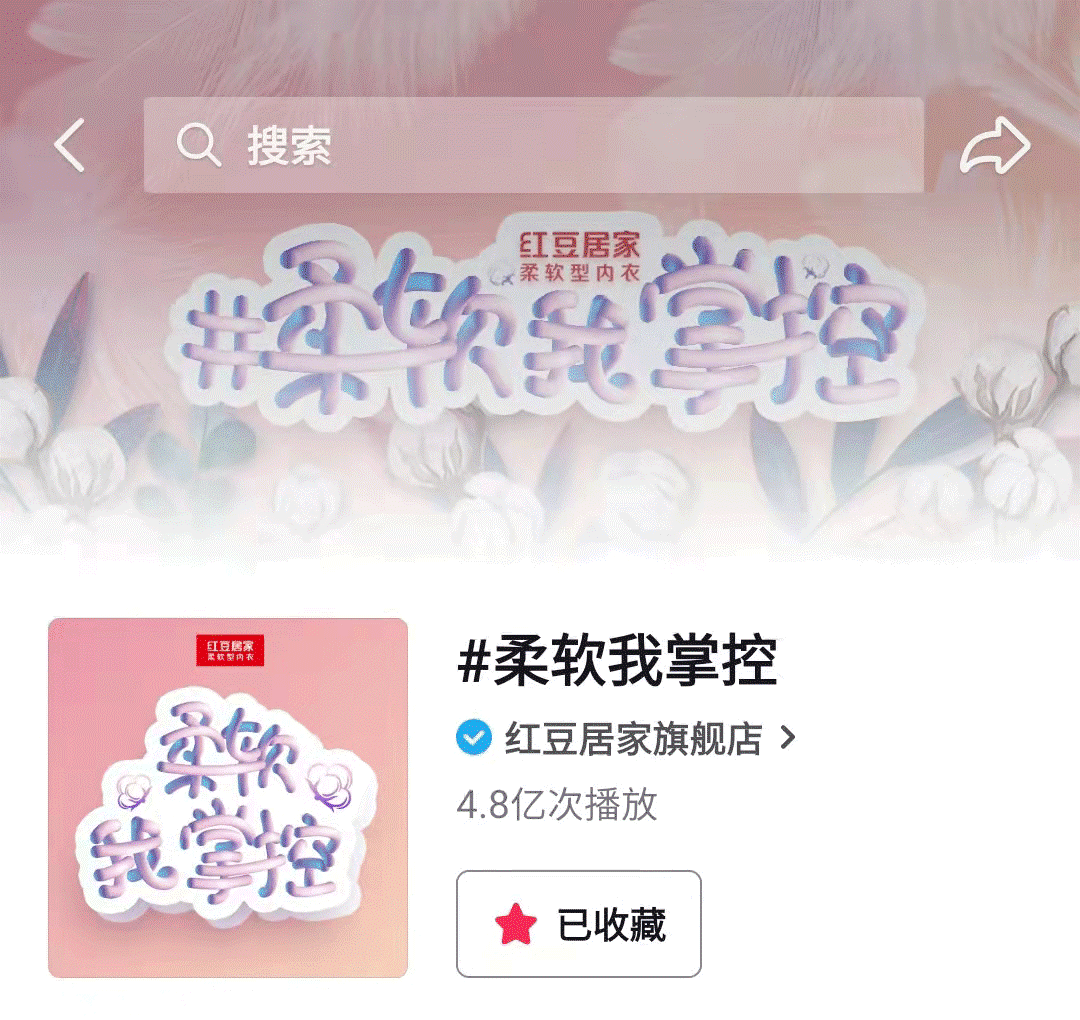 在消費升級的熱潮下,抖音日活用戶數(shù)突破6.5億。隨著短視頻的崛起,各大品牌紛紛轉(zhuǎn)移陣地,聚焦短視頻平臺,借勢短視頻平臺致力打造品牌新爆點。對于更注重線下穿著體驗的內(nèi)衣品類來說,如何在短視頻平臺鎖定目標人群創(chuàng)造高話題性的內(nèi)容、收獲高人氣,是內(nèi)衣品類進軍抖音的一大挑戰(zhàn)。最近,柔軟型內(nèi)衣的倡導者紅豆居家聯(lián)手抖音發(fā)起了#柔軟我掌控 抖音短視頻挑戰(zhàn)賽,憑借其超高熱度瞬間席卷內(nèi)衣行業(yè)圈,給行業(yè)做了一個不錯的示范。