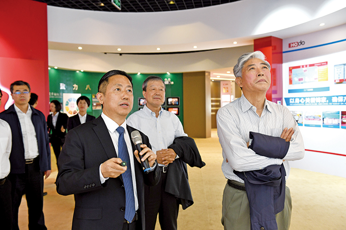 在紅豆黨建館,紅豆集團(tuán)黨委書記、董事局主席兼CEO周海江介紹了紅豆創(chuàng)立的現(xiàn)代企業(yè)制度+企業(yè)黨建+社會責(zé)任“三位一體”的中國特色現(xiàn)代企業(yè)制度、主題教育開展、企業(yè)發(fā)展等情況。周海江說,企業(yè)健康發(fā)展、企業(yè)人士健康成長,這是黨和國家對民營企業(yè)的基本要求,也是廣大民營企業(yè)的內(nèi)在要求。紅豆集團(tuán)始終堅持黨建引領(lǐng)企業(yè)治理,將黨的政治優(yōu)勢轉(zhuǎn)化為企業(yè)發(fā)展優(yōu)勢,始終堅持“聽黨話、跟黨走,講正氣、走正道”,始終堅持“以人民為中心”的發(fā)展理念,不忘初心、牢記使命,致富鄉(xiāng)親、造福社會,實業(yè)報國、八方共贏。
