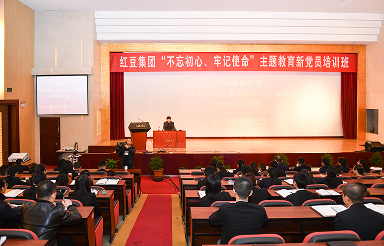 為進(jìn)一步推動(dòng)“不忘初心、牢記使命”主題教育工作深入開(kāi)展,進(jìn)一步激發(fā)、增強(qiáng)黨員榮譽(yù)感和使命感,11月23日上午,紅豆集團(tuán)黨委在展史館報(bào)告廳組織了“不忘初心、牢記使命”主題教育新黨員培訓(xùn)班,參加培訓(xùn)的有集團(tuán)近幾年新發(fā)展和新轉(zhuǎn)入的黨員,集團(tuán)總部部長(zhǎng)、二三級(jí)黨組織組織委員列席參加,駐外公司新黨員通過(guò)視頻連線的方式參與聽(tīng)課。此次培訓(xùn)班,紅豆集團(tuán)邀請(qǐng)到無(wú)錫市二級(jí)巡視員、市委組織部原副部長(zhǎng)為大家上了一堂“不忘初心、牢記使命,做新時(shí)代合格共產(chǎn)黨員”主題的生動(dòng)黨課。
