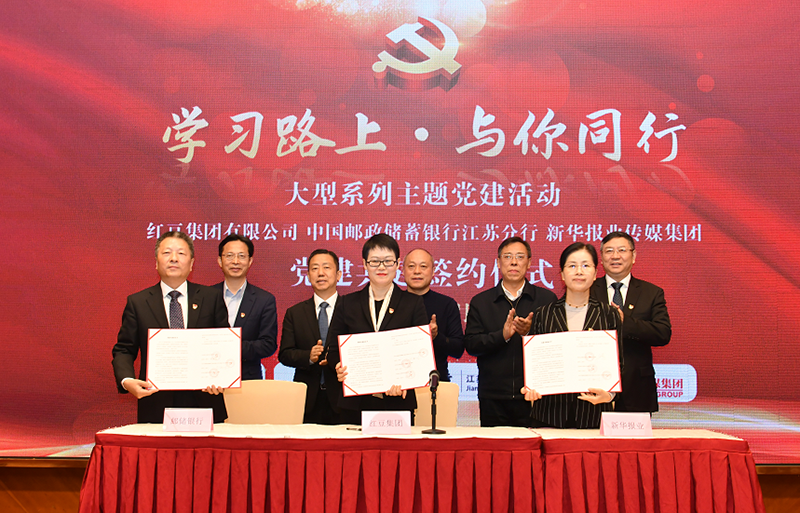 活動(dòng)上,紅豆集團(tuán)有限公司、中國(guó)郵政儲(chǔ)蓄銀行江蘇分行、新華報(bào)業(yè)傳媒集團(tuán)三方舉行了黨建共建簽約儀式,來自三方的一線黨支部也進(jìn)行了結(jié)對(duì)共建。這也是繼去年12月在徐工集團(tuán)成功開啟首場(chǎng)“學(xué)習(xí)路上?與你同行”暨“一路‘郵’你”主題黨建活動(dòng)之后舉辦的第二場(chǎng)大型活動(dòng)。