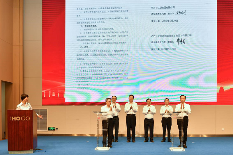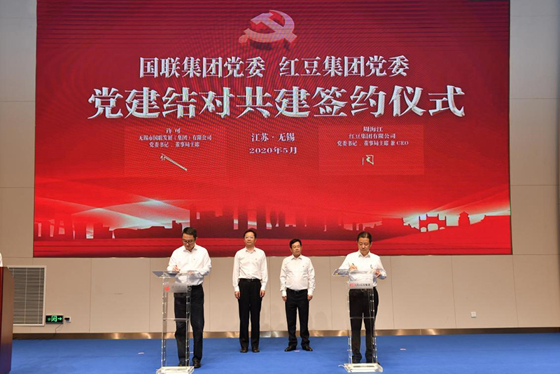 5月29日,紅豆集團(tuán)有限公司與無錫市國聯(lián)發(fā)展(集團(tuán))有限公司在紅豆錫東財(cái)富廣場舉行了黨建結(jié)對(duì)共建暨戰(zhàn)略合作簽約儀式,共同探索新時(shí)期黨建工作新思路、新路徑、新方法,攜手為無錫爭當(dāng)全省高質(zhì)量發(fā)展領(lǐng)跑者注入更多活力。中共無錫市委常委、組織部部長馮軍,中共無錫市錫山區(qū)委書記顧中明,國聯(lián)集團(tuán)黨委書記、董事局主席許可,國聯(lián)集團(tuán)黨委副書記、總裁華偉榮,紅豆集團(tuán)黨委書記、董事局主席兼CEO周海江,中共無錫市錫山區(qū)委常委、組織部部長竇虹等出席活動(dòng)。
