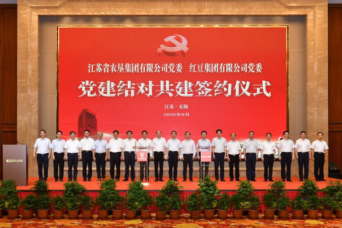 民企和國企強(qiáng)強(qiáng)聯(lián)合,以高質(zhì)量黨建引領(lǐng)高質(zhì)量發(fā)展。6月12日,紅豆集團(tuán)有限公司黨委、江蘇農(nóng)墾集團(tuán)有限公司黨委黨建共建簽約儀式在紅豆杉莊舉行,旨在不斷增強(qiáng)企業(yè)黨組織的政治功能和組織力,提升新時代黨建工作質(zhì)量和成效,促進(jìn)雙方黨建工作和業(yè)務(wù)經(jīng)營深度合作,同時也是創(chuàng)新國企、民企黨建結(jié)對共建模式的積極探索。