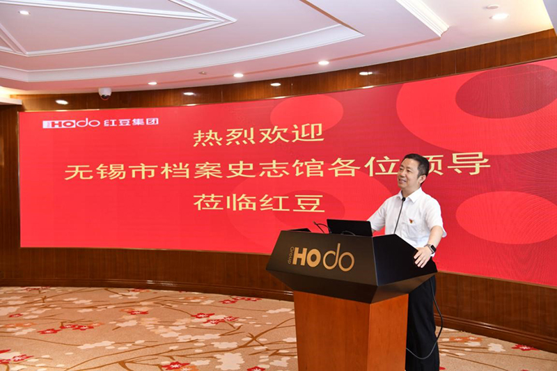 7月9日下午,無錫市檔案史志館在紅豆集團(tuán)開展“學(xué)習(xí)紅豆黨建經(jīng)驗(yàn) 助推檔案史志高質(zhì)量發(fā)展”主題活動(dòng)。活動(dòng)期間,紅豆集團(tuán)與無錫市檔案史志館舉行了檔案史料互贈(zèng)儀式。無錫市檔案史志館黨組書記、館長宗翡,無錫市檔案史志館副館長徐俊文,紅豆集團(tuán)黨委書記、董事局主席兼CEO周海江,紅豆集團(tuán)黨委副書記、紀(jì)委書記顧建清,紅豆集團(tuán)黨委副書記、組織部部長錢靜等出席活動(dòng)。
